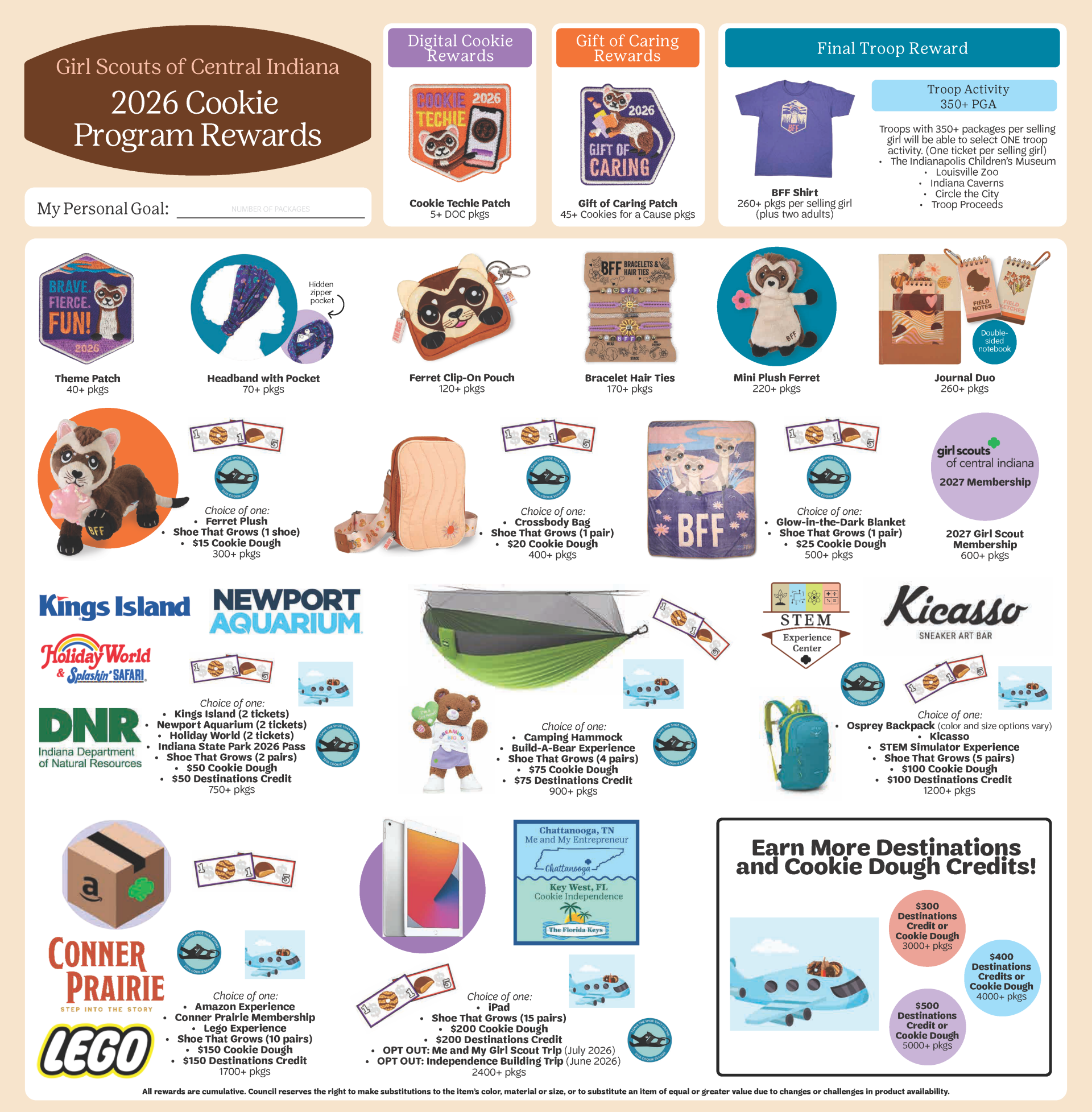 Bring your family and friends for an unforgettable day of outdoor fun, hands-on activities, and community connection. Explore the trails of Camp Dellwood, meet inspiring partners, learn about this year’s cookie mascot—the Black-Footed Ferret—and cheer on girls as they show how cookies fuel courage, confidence, and character.